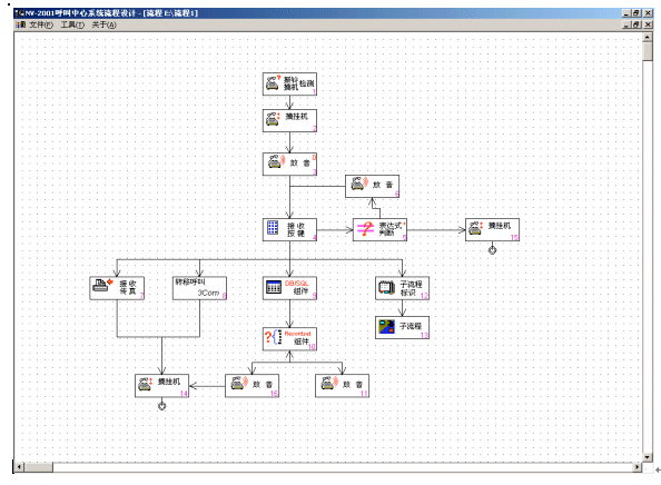 NV-IVR是一個使用方便、功能強(qiáng)大支持持續(xù)開發(fā)的開放式產(chǎn)品。NV-IVR運(yùn)用圖形化按鈕,直觀顯示各個子模塊的主題,使用者只要通過簡單的拖曳、配置就可以生成一棵樹狀流程圖,直觀地對照IVR的實(shí)際運(yùn)行流程。用戶需要對實(shí)際流程進(jìn)行修改,只須對流程圖修建即可。NV-IVR可以完成以下一些主要功能: