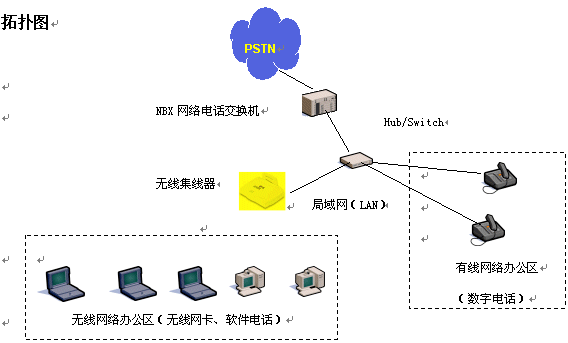 隨著信息時代的來臨,電話、電腦成了辦公領(lǐng)域的重要工具,人們在辦公室通過計算機網(wǎng)絡(luò)共享數(shù)據(jù)資源、傳遞數(shù)據(jù)信息,彼此間通過電話言語溝通。在人們享受到高科技帶來的高效率的同時,也感到一些不便,例如計算機網(wǎng)絡(luò)、電話網(wǎng)都需要單獨鋪設(shè)專用的線路,線路的變更往往是讓人心煩的事情。隨著各公司推出無線局域網(wǎng)絡(luò)解決方案(AirConnect)和NBX網(wǎng)絡(luò)電話交換機平臺的推出,通過無線局域網(wǎng)絡(luò)技術(shù),語音、數(shù)據(jù)兩網(wǎng)合一技術(shù),將電腦、電話機合二為一,同時從線路的束縛中解放出來。人們再也不用擔心布線問題,可以隨處移動辦公,享受無線網(wǎng)絡(luò)、無線話音,大大提高人們的辦公效率。