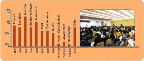 展會(huì)期間,我們將邀請(qǐng)近20,000名來(lái)自電信、保險(xiǎn)、銀行、證券、郵政、電力、民航、旅游、鐵路、物流、制造業(yè)、房地產(chǎn)、醫(yī)藥、政府部門(mén)及煙草等行業(yè)的專(zhuān)業(yè)觀(guān)眾前來(lái)參觀(guān)。