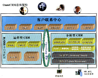 經(jīng)營(yíng)分析型CRM: OmniVision是OmniCRM方案中經(jīng)營(yíng)分析型CRM的核心,它采用數(shù)據(jù)倉(cāng)庫(kù)、ETL、OLAP分析、靈活報(bào)表展現(xiàn)及數(shù)據(jù)挖掘等技術(shù),結(jié)合電信業(yè)務(wù)的深厚經(jīng)驗(yàn),進(jìn)行用戶分析、業(yè)務(wù)分析、收益分析、大客戶分析、營(yíng)銷(xiāo)分析、競(jìng)爭(zhēng)分析、服務(wù)質(zhì)量分析等主題分析。 客戶聯(lián)系中心: OmniContactCenter是OmniCRM方案中的客戶聯(lián)系中心,包括多媒體呼叫中心、網(wǎng)上用戶自服務(wù)系統(tǒng)(網(wǎng)上營(yíng)業(yè)廳)、直郵傳真處理中心等。所有的市場(chǎng)活動(dòng)都是由客戶聯(lián)系中心傳遞給客戶的,所有的客戶反饋和請(qǐng)求都是由這里反饋給分析系統(tǒng)的。 大客戶管理:OmniVIP OmniVIP是亞信公司結(jié)合深厚的行業(yè)知識(shí),專門(mén)針對(duì)集團(tuán)大客戶、商業(yè)大客戶、潛在大客戶等各類電信大客戶,從分析和運(yùn)營(yíng)兩個(gè)方面為各電信公司提供的完整而領(lǐng)先的大客戶管理方案,它能夠?yàn)檫\(yùn)營(yíng)商提供現(xiàn)有及潛在大客戶的全方位視圖,包括客戶行為、業(yè)務(wù)情況、商業(yè)獲利率、競(jìng)爭(zhēng)情況等,挖掘潛在商機(jī),使利潤(rùn)最大化;能夠使運(yùn)營(yíng)商有效地降低成本;能夠使運(yùn)營(yíng)商為大客戶提供真正的個(gè)性化服務(wù);能夠使運(yùn)營(yíng)商預(yù)測(cè)、吸引并發(fā)展?jié)撛诘拇罂蛻簦荒軌蚴惯\(yùn)營(yíng)商有效地管理大客戶服務(wù)人員,提高客戶的滿意度和忠誠(chéng)度;能夠通過(guò)OmniContactCenter、代理商、營(yíng)業(yè)廳、SMS、Email等全面的渠道管理,幫助電信運(yùn)營(yíng)商對(duì)大客戶進(jìn)行“全員、全程、全方位”服務(wù),從而全方位地為大客戶提供最完善優(yōu)質(zhì)的服務(wù)。 市場(chǎng)管理:OmniMarketing OmniMarketing根據(jù)分析系統(tǒng)得出的結(jié)論,產(chǎn)生相應(yīng)的市場(chǎng)活動(dòng)發(fā)送給運(yùn)營(yíng)型CRM部分執(zhí)行,同時(shí)將執(zhí)行結(jié)果和反饋收集回來(lái)進(jìn)行比較、評(píng)價(jià)和進(jìn)一步的分析,以期設(shè)計(jì)出更合理的資費(fèi)和更貼切的業(yè)務(wù)給用戶。 銷(xiāo)售管理:OmniSFA 隨著競(jìng)爭(zhēng)的加劇,運(yùn)營(yíng)商的銷(xiāo)售也將從傳統(tǒng)的柜臺(tái)坐等的經(jīng)營(yíng)模式轉(zhuǎn)變成有針對(duì)性的主動(dòng)出擊發(fā)展客戶的模式。銷(xiāo)售管理系統(tǒng)就是提供了針對(duì)銷(xiāo)售人員的銷(xiāo)售輔助工具,其中包括任務(wù)分配與下達(dá)、日程安排、客戶資料管理、銷(xiāo)售機(jī)會(huì)管理、銷(xiāo)售漏斗、報(bào)價(jià)管理、訂單合同管理、銷(xiāo)售業(yè)績(jī)考評(píng)和資金評(píng)定等模塊。 通過(guò)OmniSFA,銷(xiāo)售工作將按照科學(xué)化正規(guī)化流程化的方式來(lái)進(jìn)行。 運(yùn)作型和分析型CRM的互動(dòng)循環(huán)
