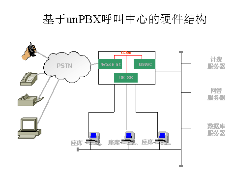 所謂unPBX就是利用CTI構件來完成電話系統(tǒng)的功能。這樣的電話系統(tǒng)具有傳統(tǒng)的PBX的所有功能。目前,這種交換系統(tǒng)逐漸在市場上流行開來。它較傳統(tǒng)和PBX有一些優(yōu)越性。