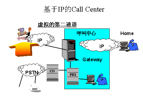 目前擁有呼叫中心基礎設施(這些設施包括自動呼叫分配器ACD、IVR系統(tǒng)或呼叫管理系統(tǒng))的企業(yè)安裝一個互聯(lián)網(wǎng)電話網(wǎng)關作為通向ACD或呼叫中心轉(zhuǎn)換的前端。網(wǎng)關作為公用電話交換網(wǎng)與互聯(lián)網(wǎng)絡之間的橋梁,使呼叫中心能夠向客戶和潛在客戶傳送同步語音和數(shù)據(jù)服務,所有這一切都通過一條電話線。按數(shù)字顯示,網(wǎng)關可通過模擬線路與現(xiàn)有設備連接,或通過數(shù)字線路與多媒體PC連接。這使得呼叫中心能夠利用其現(xiàn)有設備,工作人員培訓和呼叫管理活動中的原有投資。