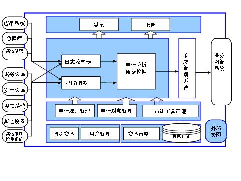 圍繞《薩班斯法案》第404條款的基本要求,結(jié)合運(yùn)營商的業(yè)務(wù)支撐系統(tǒng)運(yùn)維特點,面向業(yè)務(wù)系統(tǒng)的安全審計系統(tǒng)一般應(yīng)具備以下功能: