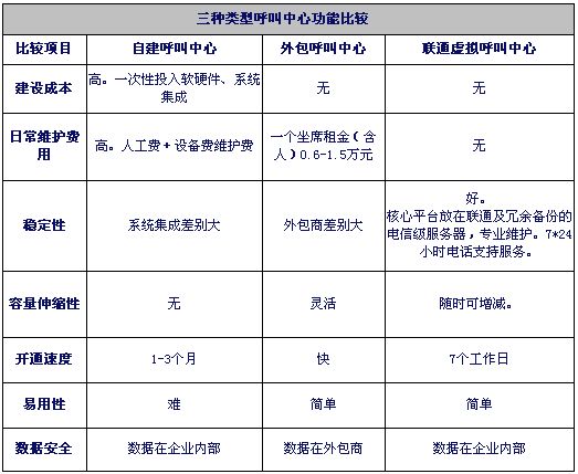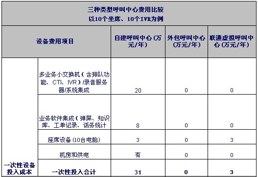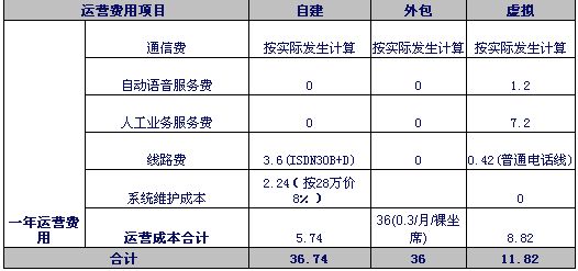 注1:自建和外包呼叫中心按目前市場平均價計算。虛擬呼叫中心按聯(lián)通標(biāo)準資費計算。外包坐席按裸坐席計算。