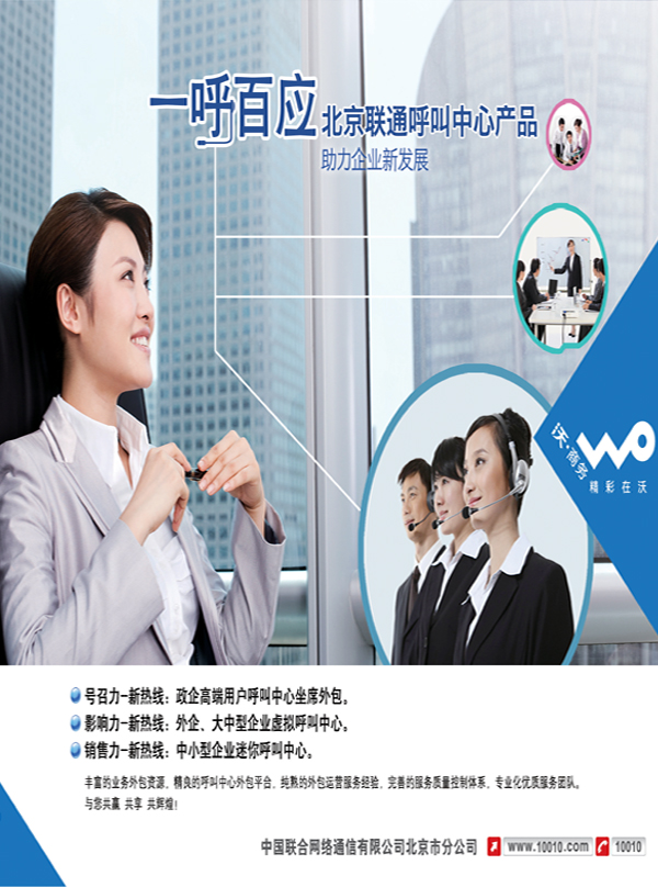 北京聯(lián)通外包呼叫中心的前身為奧運(yùn)呼叫中心,2008年奧運(yùn)會結(jié)束,先后承擔(dān)了奧運(yùn)會、殘奧會賽會志愿者招募咨詢、奧運(yùn)會、殘奧會票務(wù)咨詢、奧運(yùn)特許商品質(zhì)詢及“好運(yùn)北京測試賽”等一系列與奧運(yùn)會、殘奧會緊密相關(guān)的服務(wù)工作。