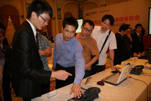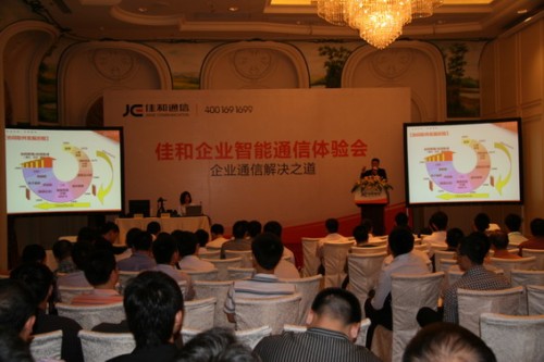 CTI論壇(ctiforum)4月25日消息(記者 潘婷婷): 廣東佳和通信技術(shù)有限公司主辦的首場(chǎng)企業(yè)智能通信體驗(yàn)會(huì),于2011年4月13日在廣州富力麗思卡爾頓酒店隆重召開(kāi),并取得圓滿(mǎn)成功。此次體驗(yàn)會(huì)來(lái)自佳和通信的負(fù)責(zé)人和業(yè)內(nèi)專(zhuān)家就佳和企業(yè)智能通信平臺(tái)的應(yīng)用以及協(xié)同辦公的發(fā)展趨勢(shì)發(fā)表了主題演講,為所有到場(chǎng)的100多位來(lái)賓做了詳實(shí)的介紹。同時(shí)展示了佳和“!毕盗械7個(gè)應(yīng)用解決方案,并對(duì)拳頭產(chǎn)品——智能IP話機(jī)T600、移動(dòng)分機(jī)M600、個(gè)人助理軟件IPA PRO等進(jìn)行了現(xiàn)場(chǎng)演示和互動(dòng),其目的在于使現(xiàn)場(chǎng)嘉賓充分感受企業(yè)智能通信的價(jià)值和魅力,同時(shí)親身體驗(yàn)到如何在在加速辦公自動(dòng)化的同時(shí)提高企業(yè)效率、節(jié)約成本。