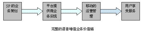 在語音雜志業(yè)務(wù)運營中,SP、語音平臺提供商、移動公司、移動用戶組成了一條完整的價值鏈,如下圖所示: