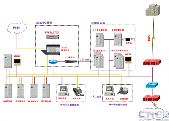 95190呼叫中心項(xiàng)目采用國(guó)際知名品牌AVAYA交換機(jī)作為系統(tǒng)接入處理,提供了包括數(shù)據(jù)庫(kù)服務(wù)器、文件服務(wù)器、CTI/IVR服務(wù)器、中間件服務(wù)器等相關(guān)后臺(tái)強(qiáng)有力的支撐服務(wù)設(shè)備,提供了三層網(wǎng)絡(luò)交換機(jī)、硬件防火墻等網(wǎng)絡(luò)設(shè)備等。整個(gè)系統(tǒng)達(dá)到960路中繼接入、180路人工座席、20路IP座席、360路IVR、15路傳真;支持7號(hào)信令、ISDN信令等信令協(xié)議;提供人工座席的實(shí)時(shí)同步錄音。