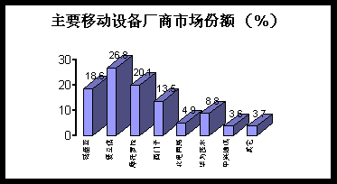 (3)市場(chǎng)趨勢(shì)及預(yù)測(cè): 2001年移動(dòng)網(wǎng)絡(luò)設(shè)備市場(chǎng)預(yù)計(jì)總體保持快速增長(zhǎng),在GSM領(lǐng)域,中國(guó)移動(dòng)25城市GPRS實(shí)驗(yàn)網(wǎng)的開(kāi)通,對(duì)移動(dòng)互聯(lián)將是實(shí)質(zhì)性的推動(dòng),WAP熱炒冷賣的局面會(huì)有所改變。各大設(shè)備廠商受此影響將沉浮巨大,愛(ài)立信、諾基亞、摩托羅拉、華為技術(shù)等公司將順勢(shì)擴(kuò)大市場(chǎng)份額,市場(chǎng)集中度進(jìn)一步提高。