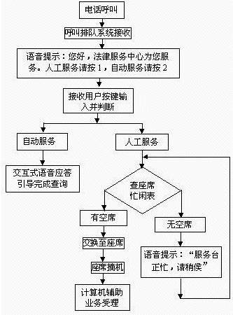 · 外線撥入系統(tǒng)后,如果選擇人工服務,系統(tǒng)將來話與臺內座席接通。值班人員詢問用戶需求,通過座席電腦查詢相應法律條文,向用戶提供相關的法律服務。