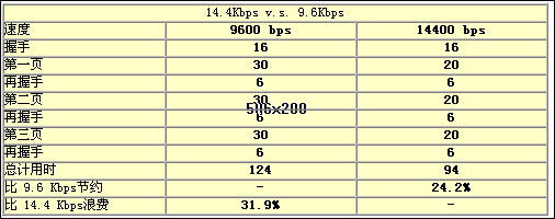 東進(jìn)傳真卡TC-04FM采用RockWell的33.6K的芯片,提供的傳真速率是 14.4Kbps,相對于 9.6Kbps,可以節(jié)約24.2%的時間(按3頁傳真計算)。各項操作的占用時間比較表如下: