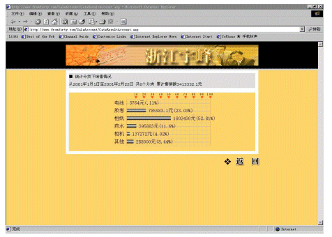 宇峰公司(www.fromforty.com)是柯達(dá)(中國)有限公司在中國華東地區(qū)的總代理,負(fù)責(zé)管理華東地區(qū)近600個分銷商和連鎖店。公司非常重視信息化建設(shè),添設(shè)了大量的計(jì)算機(jī),建立起初步的管理系統(tǒng)。但是直到2000年還是依靠E-mail傳遞大量的Excel表格獲取需要的產(chǎn)品銷售和庫存的信息。這些表格對各級分銷商查詢和統(tǒng)計(jì)數(shù)據(jù)來說非常麻煩,因?yàn)槊恐芤幚韼装賯訂購單。整個處理過程非常緩慢,并且成本很高,也容易造成各種的數(shù)據(jù)錯誤。而公司內(nèi)部對業(yè)務(wù)人員銷售情況的統(tǒng)計(jì),也頗為麻煩,因?yàn)橄录壏咒N商上報(bào)上來的數(shù)據(jù)準(zhǔn)確性差,并且不夠及時(shí)。處理這些表格對宇峰公司和分銷商以及連鎖店而言都是效率很低的,并且常常令人茫然不知所措。