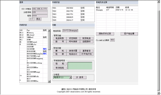 。。利用內(nèi)嵌的OCX控件,星際網(wǎng)絡(luò)已經(jīng)完全實(shí)現(xiàn)了在web頁面調(diào)用呼叫中心的功能,其主界面如下: