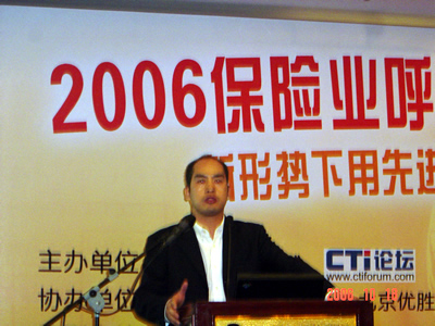 。。2006年10月18日,2006保險(xiǎn)業(yè)呼叫中心應(yīng)用暨電話營(yíng)銷高峰研討會(huì)在北京天鴻科園大酒店隆重召開,以下是K6主題演講實(shí)錄: