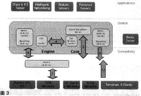 連接層由3個關鍵部分組成:用戶設備、媒體網(wǎng)關和IP傳輸。ENGINE解決方案的媒體網(wǎng)關可以支持從很小數(shù)量的用戶擴展到數(shù)百萬用戶。本地交換機、匯接交換機和用戶交換機可以接入到媒體網(wǎng)關。多媒體用戶可通過SIP終端和IAD接入。ENGINE支持采用V5、ISUP、SIP和H.248等各種接入節(jié)點的用戶。在ENGINE解決方案中,媒體網(wǎng)關同時也是接入網(wǎng)關,可以實現(xiàn)C5電話業(yè)務和基于SIP的寬帶用戶功能。