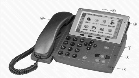 InfoPhone與普通電話機的最大區(qū)別在于:她擁有增強型的操作面板(圖中標識2),超清晰的液晶顯示螢幕( 圖中標識3),手感舒適的點觸筆(圖中標識5),實用型的狀態(tài)指示燈(圖中標識6)。通過點觸筆和操作面板上的按鍵點選和控制液晶顯示螢幕上的選項,完成相應的操作。