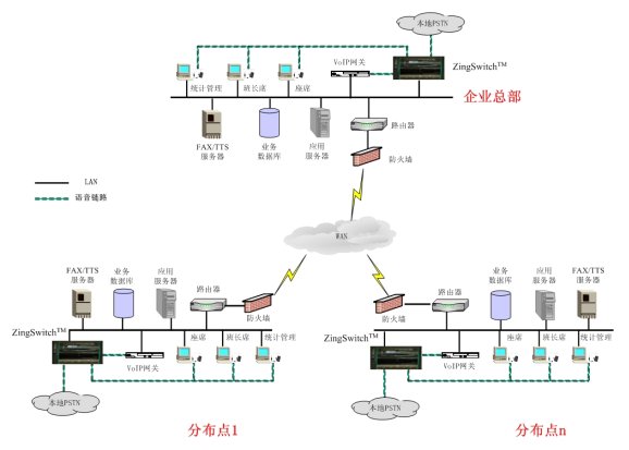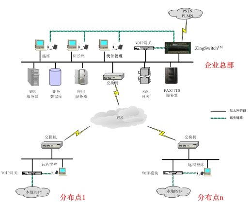 - 各個(gè)分布點(diǎn)的呼入和呼出都直接通過(guò)當(dāng)?shù)赝ㄐ欧⻊?wù)商,既保證了語(yǔ)音服務(wù)的質(zhì)量,又減少了系統(tǒng)的通話(huà)費(fèi)用。