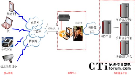應用服務平臺:以GIS平臺為主,配合交通信息平臺、公共信息平臺以及餐飲酒店娛樂信息服務平臺、社交網站服務平臺、車輛服務信息平臺、應急救援服務平臺、媒體內容服務平臺等各類型的應用服務,根據應用需求提供相應的服務和數據。各應用服務通過云計算、SOA、數據總線等技術實現互聯互通、信息共享,同聯絡中心應用集成,并通過聯絡中心向用戶提供服務。