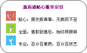 惠而浦在中國(guó)推出了“貼心服務(wù),服務(wù)到家”的宗旨。
