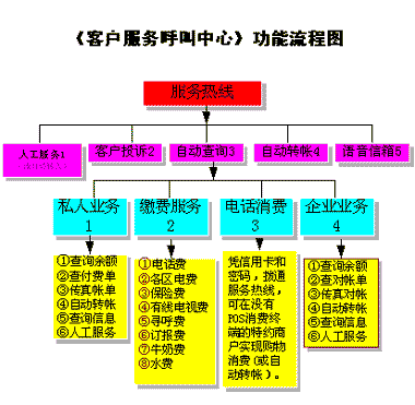 上圖是整個(gè)《銀行客戶服務(wù)呼叫中心》的主功能流程圖