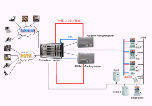 奧迪堅全球領(lǐng)先的CTI平臺的供應(yīng)商和IP分布式呼叫中心的領(lǐng)導(dǎo)者,在技術(shù)上不斷創(chuàng)新,對產(chǎn)品精益求精,尤其體現(xiàn)在對系統(tǒng)的運(yùn)行安全性的要求上,為了防止電信接入設(shè)備或者企業(yè)網(wǎng)絡(luò)出現(xiàn)故障而造成的呼叫中心服務(wù)中斷,奧迪堅呼叫中心系統(tǒng)提供安全保護(hù)冗余切換系統(tǒng),來保障呼叫中心在意外情況下的正常工作,該安全冗余切換系統(tǒng)通過對電源、T1/E1、模擬trunk、分機(jī)座席、以及各種網(wǎng)絡(luò)鏈路串口等備份切換來實現(xiàn)可靠的運(yùn)行。除此之外,奧迪堅系統(tǒng)本身也提供強(qiáng)大的安全保障,由于采用先進(jìn)IP內(nèi)核一體化設(shè)計,集傳統(tǒng)PBX、CTI服務(wù)器、IVR、ACD、Recording、FAX等眾多設(shè)備于一體,這樣有效的避免了因為外掛設(shè)備過多以及設(shè)備供應(yīng)商的不同而存在的兼容性的問題,從而降低了給呼叫中心系統(tǒng)帶來的的不穩(wěn)定的安全隱患。在系統(tǒng)之外依靠安全保護(hù)冗余切換系統(tǒng),可以實現(xiàn)外線、分機(jī)、以及各種鏈路接口的雙倍安全運(yùn)行。當(dāng)啟用了冗余功能,并且已經(jīng)激活了主服務(wù)器,系統(tǒng)會將所有的許可協(xié)議,配置,語音信箱文件以及客戶短語等復(fù)制到次服務(wù)器上。