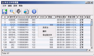 Manager是奧迪堅全新推出的基于數(shù)據(jù)庫的錄音文件管理應用軟件,主要針對ACM的內(nèi)置錄音系統(tǒng)所錄制下來的文件進行索引、播放、保存、備份、格式轉換、搜索等各項操作,使管理者能夠對客戶服務人員進行服務質量考核與管理,保證微笑客戶服務,提升客戶的滿意度。整個服務中心的電話錄音采用電腦數(shù)字化技術,因此無需增加傳統(tǒng)的錄音服務器,每路座席外線都自帶錄音資源,可以進行多線同時錄音,錄音記錄,錄音回放,并且可以實現(xiàn)撥號/摘機識別/掛機識別/通知錄音/錄音監(jiān)聽/完成記錄等功能,每個模塊均采用獨立運行方式,互為備份不影響。奧迪堅電話錄音系統(tǒng)提供智能型的?旖M合設置和條件,包括錄音查詢及系統(tǒng)參數(shù)設置;通道狀態(tài)設置;各種條件的錄音查詢;多通道連選同時播放;組合的保存、備份和刪除;工作日志的記錄和打;系統(tǒng)和用戶權限的增刪編輯等功能,極大的方便管理人員的操作和使用。