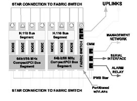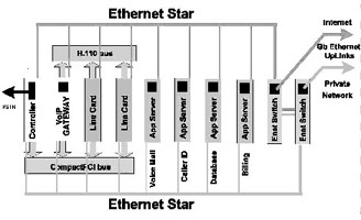 如果我們采用基于CompactPCI標(biāo)準(zhǔn)的刀片服務(wù)器系統(tǒng)來實現(xiàn),系統(tǒng)可能就是完全另外一種樣子(如圖1),這樣的實現(xiàn),首先系統(tǒng)體積小,只要一個刀片服務(wù)器機箱;第二,系統(tǒng)基于標(biāo)準(zhǔn)的體系架構(gòu),開發(fā)和維護容易,成本低廉;第三,系統(tǒng)非常好地集成了語音通信和IP通信,易于部署增值電信業(yè)務(wù);第四,系統(tǒng)具有較好的可擴展性,因為背板提供了豐富的帶寬資源,同時單位空間內(nèi)豐富的插槽,可以安裝更多的服務(wù)器刀片,提供了充足的計算資源;第五,系統(tǒng)還可以利用各種高可靠性和高可管理性的特點。