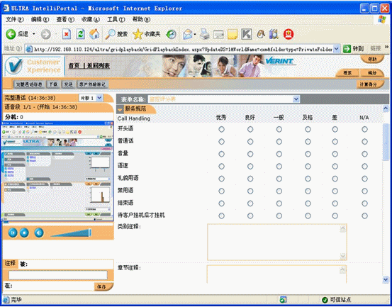 Verint績效管理系統包含績效管理分析,業(yè)務流程優(yōu)化和在線培訓模塊,幫助對于呼叫中心的管理和對業(yè)務流程的量度,使企業(yè)能在更新和更高的層面來判斷和優(yōu)化業(yè)務流程。