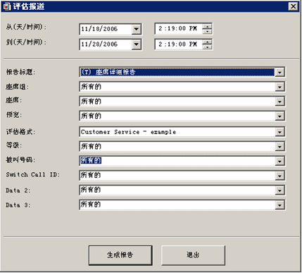 在質量管理系統中,用戶可以通過評估報表生成器,定義客戶化的評估報表。用戶可以針對座席的表現生成文字和圖形化的報表。通過這些報表,可以了解需要改善和增強的座席培訓內容。