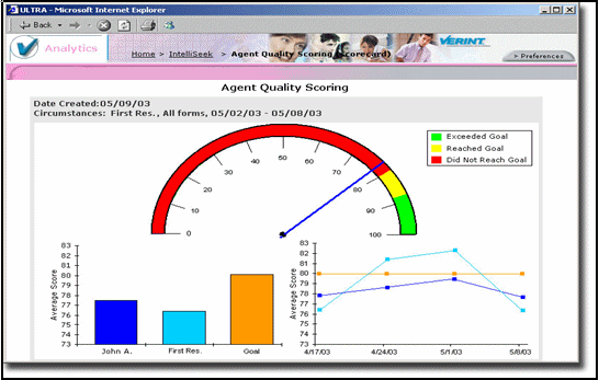 評估表單提供了部分IntelliSeek不提供的內容,包括生成無座席數量上限的報表(IntelliSeek最多為15座席),靈活的時間周期(IntelliSeek基于固定的時間段,每周、每月、每季度、每年),針對表單特定項分析座席評估分數發(fā)展趨勢(IntelliSeek分析不超過20個數據項)。