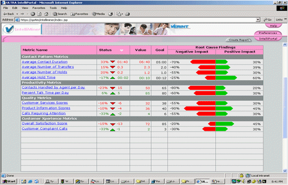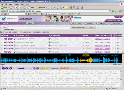 IntelliMiner使用專利的數據挖掘技術,自動分析導致呼叫中心關鍵行為指標(KPI)和呼叫中心設定目標的因素及其關系和影響。所分析的數據揭示了導致呼叫中心KPI表現的潛在原因,例如過長的通話時間,過多的轉接次數,過長的保持時間,降低生產力和降低客戶滿意度。針對分析的結果,用戶可以去回放相關的呼叫,找到導致這些因素的原因所在。