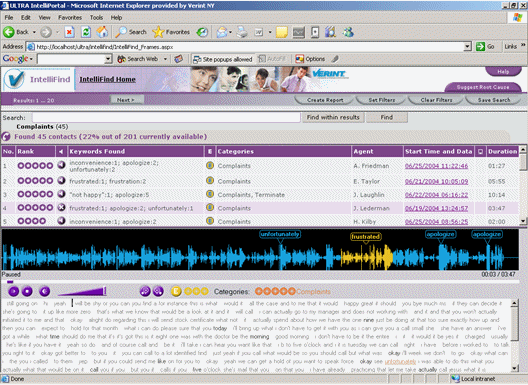 IntelliFind將客戶呼叫轉換成可搜索的數據庫形式,根據業(yè)務分類、短語和關鍵字鑒別呼叫。IntelliFind使用語音文本轉換技術轉換客戶呼叫錄音,幫助用戶理解客戶交互的情況。
