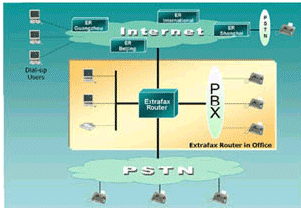 對于普通的傳真機,ExtraFax Router是更合算的選擇。它不僅不需要額外的網(wǎng)關(guān)設(shè)計,而且它還可以自動計算長途計費單。最重要的是它可以自動尋找最佳路徑 (即最節(jié)省的方式) 通過Internet/Intranet發(fā)送傳真,同時ExtraFax Router基于DID/DTMF/CSID/PORT/Channel的自動分發(fā)到個人的傳真信箱也降低了人工管理的費用并能實現(xiàn)傳真的安全性。