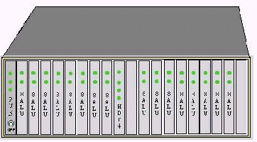 見(jiàn)上圖 DAS120主機(jī)所用的機(jī)框?yàn)?9英寸標(biāo)準(zhǔn)機(jī)框,可直接裝入19英寸機(jī)柜,也可放置在桌面。機(jī)框共有20個(gè)槽口,兩邊可插兩塊電源板PSU,中間插數(shù)字中繼接口板HDT4,其余16個(gè)槽可插15塊模擬用戶(hù)板8ALU(或8ATU)。8ALU每塊板為8路,一個(gè)機(jī)框總共120路。