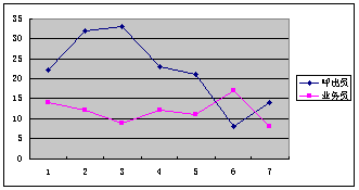 表1是我們對14天的銷售業(yè)績進(jìn)行了跟蹤而得出,這里的業(yè)務(wù)員1和業(yè)務(wù)員2,是目前富爾公司銷售業(yè)績最好的,其他業(yè)務(wù)員相差的要遠(yuǎn)的多(平均可能相差在5-10倍)。