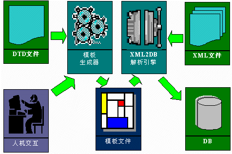 但是在很多場合下,比如用戶信息的輸入以及數(shù)據(jù)存儲還必須依賴于數(shù)據(jù)庫來完成。也就是需要建立XML和數(shù)據(jù)庫之間的雙向轉(zhuǎn)換,因此還必須提供從XML到數(shù)據(jù)庫的轉(zhuǎn)換工具。InfOnCall的XML2DB產(chǎn)品就是穎科公司為滿足該需求而開發(fā)的最新產(chǎn)品。InfOnCall的XML2DB產(chǎn)品能夠?qū)ML文檔中的層次結(jié)構(gòu)數(shù)據(jù)和數(shù)據(jù)庫之間建立相互的映射關(guān)系,并且通過該映射關(guān)系將實際的XML文檔數(shù)據(jù)導(dǎo)入到目標數(shù)據(jù)庫中。