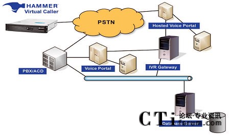 Hammer On-Call IVR測試關(guān)注呼叫中心的自助服務(wù)技術(shù),以運(yùn)營商網(wǎng)絡(luò)為起點(diǎn)和包括從PSTN接受電話呼叫的PBX/ACD系統(tǒng)、處理電話呼叫的IR(自動應(yīng)答系統(tǒng))或Voice Portal(語音門戶)、載有面向用戶型業(yè)務(wù)的業(yè)務(wù)服務(wù)器(如VXML)、用于語音激活型業(yè)務(wù)的語音識別引擎或者是處理DTMF業(yè)務(wù)的DTMF收集器、文本轉(zhuǎn)換成語音的資源、和用于支持自助服務(wù)環(huán)境下運(yùn)行業(yè)務(wù)的所有后臺系統(tǒng)。