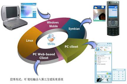 IMS軟終端產(chǎn)品線主要包括:PC軟終端(Windows版本)、手機(jī)軟終端(Symbian S60手機(jī)、Windows Mobile手機(jī)以及Linux手機(jī))和Web控件通信終端。