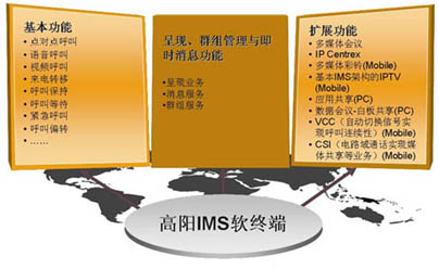 高陽(yáng)IMS軟終端產(chǎn)品線是基于IMS(IP多媒體子系統(tǒng))技術(shù),以通信終端功能為主,融入IT特性,將在線狀態(tài)、即時(shí)消息和群組管理融為一體,集合語(yǔ)音、數(shù)據(jù)、視頻通信,提供統(tǒng)一的用戶體驗(yàn),實(shí)現(xiàn)移動(dòng)電話、PC之間的互聯(lián)互通,并且符合3GPP/ETSI/OMA/IETF/ITU-T等國(guó)際標(biāo)準(zhǔn)組織和中國(guó)電信/中國(guó)移動(dòng)規(guī)定的IMS相關(guān)規(guī)范。