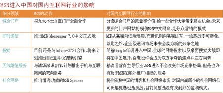 全球三大門戶之一的MSN是一個晚來者,但也是最本土化的一個。在其他國家,MSN大多采用獨資的方式進入,而且大多自己來做內容。而在中國,這一切都被顛覆了:在MSN的大旗下集合了上海文廣東方寬頻、賽迪網、上汽集團人來車網、Englishtown、貓撲網、聯眾世界、指云時代、淘寶網、北青網等九大網站,這些國內的垂直門戶網站為MSN的中國網站提供了幾乎所有的內容。