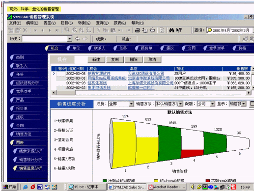 國內(nèi)軟件企業(yè)在實(shí)踐中感受客戶需求,同時接受根據(jù)國外CRM的思想,摸索創(chuàng)造出CRM產(chǎn)品,比較典型的是廣智銷售型CRM。廣智公司是廣東比較成功的圖書軟件的開發(fā)商,在圖書軟件的推廣過程中遇到客戶關(guān)系管理的問題,然后研發(fā)了廣智銷售型CRM。