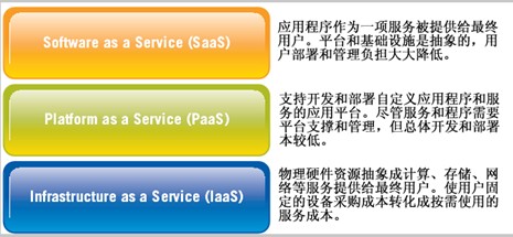 當(dāng)然,其它資源也可以通過(guò)服務(wù)的模式提供給用戶(hù),比如CaaS,Communication as a Service通信即服務(wù),但我們通常把這些服務(wù)也規(guī)到以下三類(lèi)當(dāng)中。