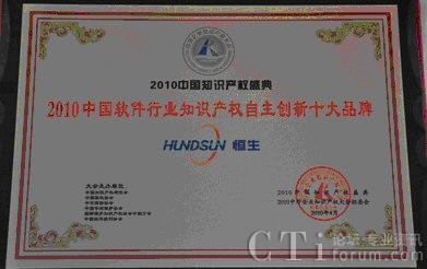 CTI論壇(ctiforum)5月7日消息(記者 楊佳林):4月25-26日,在北京人民大會堂舉辦的“2010中外知識產權大會”上,恒生電子股份有限公司憑借其自主研發(fā)并具有自主知識產權的HSIPCC產品榮獲“中國軟件行業(yè)知識產權自主創(chuàng)新十大品牌”。