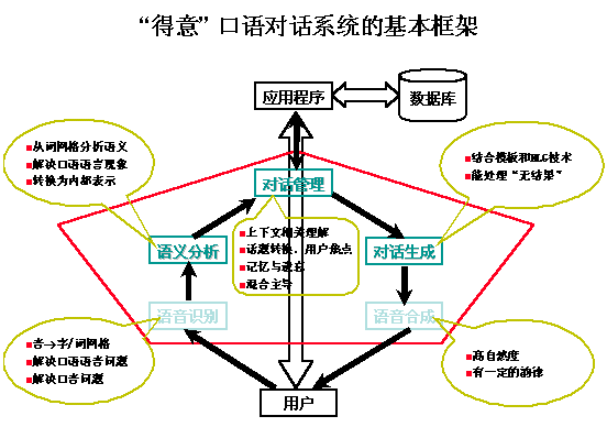 與其他中文自然語言理解系統(tǒng)不同,得意的系統(tǒng)支持的是靈活隨意的口語對話,并能根據(jù)對語義的真正理解,采用先進(jìn)的自然語言生成技術(shù),產(chǎn)生自然的應(yīng)答語句。一個(gè)口語對話系統(tǒng)包括的主要部分有:語義分析器、對話管理器、應(yīng)答生成器等。得意公司在這幾個(gè)方面都做得很好,軟件開發(fā)工具包和開發(fā)環(huán)境完備,對技術(shù)開發(fā)人員要求不高,利用該開發(fā)工具,可以大大縮短開發(fā)周期,快速并有效地開發(fā)出實(shí)用的口語對話系統(tǒng)。國內(nèi)大部分的技術(shù)開發(fā)商和SP都能輕松應(yīng)用此開發(fā)工具開發(fā)自己的智能服務(wù)系統(tǒng),有關(guān)的修改、補(bǔ)充和維護(hù)工作也很方便,一般通過修改配置文件就可以達(dá)到對系統(tǒng)進(jìn)行升級的目的。