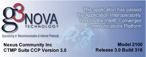 近日,Nexus CTMP for ICCP(The Intel Converged Communications Platform)3.0軟件在G3 NOVA Testing Lab通過了測(cè)試。