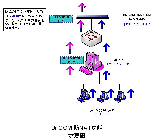實(shí)現(xiàn)的原理類似于VLAN技術(shù),通過客戶端對合法用戶數(shù)據(jù)包動態(tài)地增加一個(gè)識別標(biāo)簽,再由網(wǎng)關(guān)對這些數(shù)據(jù)包標(biāo)識去掉,轉(zhuǎn)發(fā)到上聯(lián)端口。而非法的用戶,由于數(shù)據(jù)包沒有合法的標(biāo)簽,被網(wǎng)關(guān)過濾掉。不僅能夠?qū)?nèi)網(wǎng)用戶進(jìn)行很好地防代理控制,又不影響局域網(wǎng)和城域網(wǎng)的內(nèi)網(wǎng)服務(wù)器和外部Internet服務(wù)器的正常通信。
