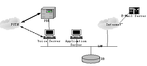 注: 本系統(tǒng)結(jié)構(gòu)靈活, TTS, Application Server 和語音識別引擎可以根據(jù)系統(tǒng)的大小分別分布在幾臺服務(wù)器上, 或者集中在一臺服務(wù)器上.