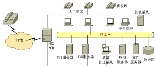 負(fù)責(zé)座席話機(jī)與計(jì)算機(jī)的同步,話務(wù)員在接到電話的同時(shí),屏幕上已經(jīng)同步地顯示出該客戶的相關(guān)信息,使話務(wù)員可以針對客戶記錄為客戶提供更為體現(xiàn)的個(gè)性化服務(wù)。PBX/ACD、IVR和座席之間關(guān)于呼叫控制和信息傳輸都是通過CTI服務(wù)器完成的,是呼叫中心通信中樞神經(jīng)系統(tǒng)。