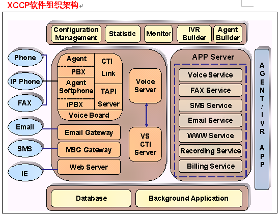 是XCCP的核心組件之一,由聲軟科技的拳頭產(chǎn)品VoiceServer擔(dān)當(dāng)重任,實(shí)現(xiàn)呼叫中心系統(tǒng)中自動(dòng)語音所有功能,集語音、傳真、TTS、短信和語音識(shí)別技術(shù)為一體,為客戶建設(shè)多媒體呼叫中心提供技術(shù)基礎(chǔ)。