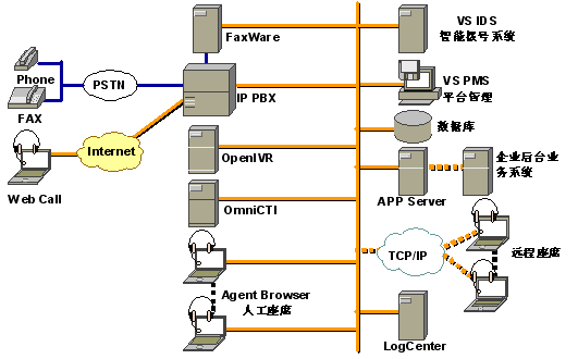 2.座席電話采用完全的軟電話技術(shù),利用座席PC機(jī)的聲卡就可以接聽(tīng)電話或打電話,無(wú)需專門的語(yǔ)音電話線,PC機(jī)只要接到企業(yè)的局域網(wǎng)上就可以工作,可以進(jìn)行語(yǔ)音通信,大家節(jié)省了布線工作,座席可以靈活移動(dòng),只要計(jì)算機(jī)網(wǎng)絡(luò)到的地方就可以設(shè)立座席